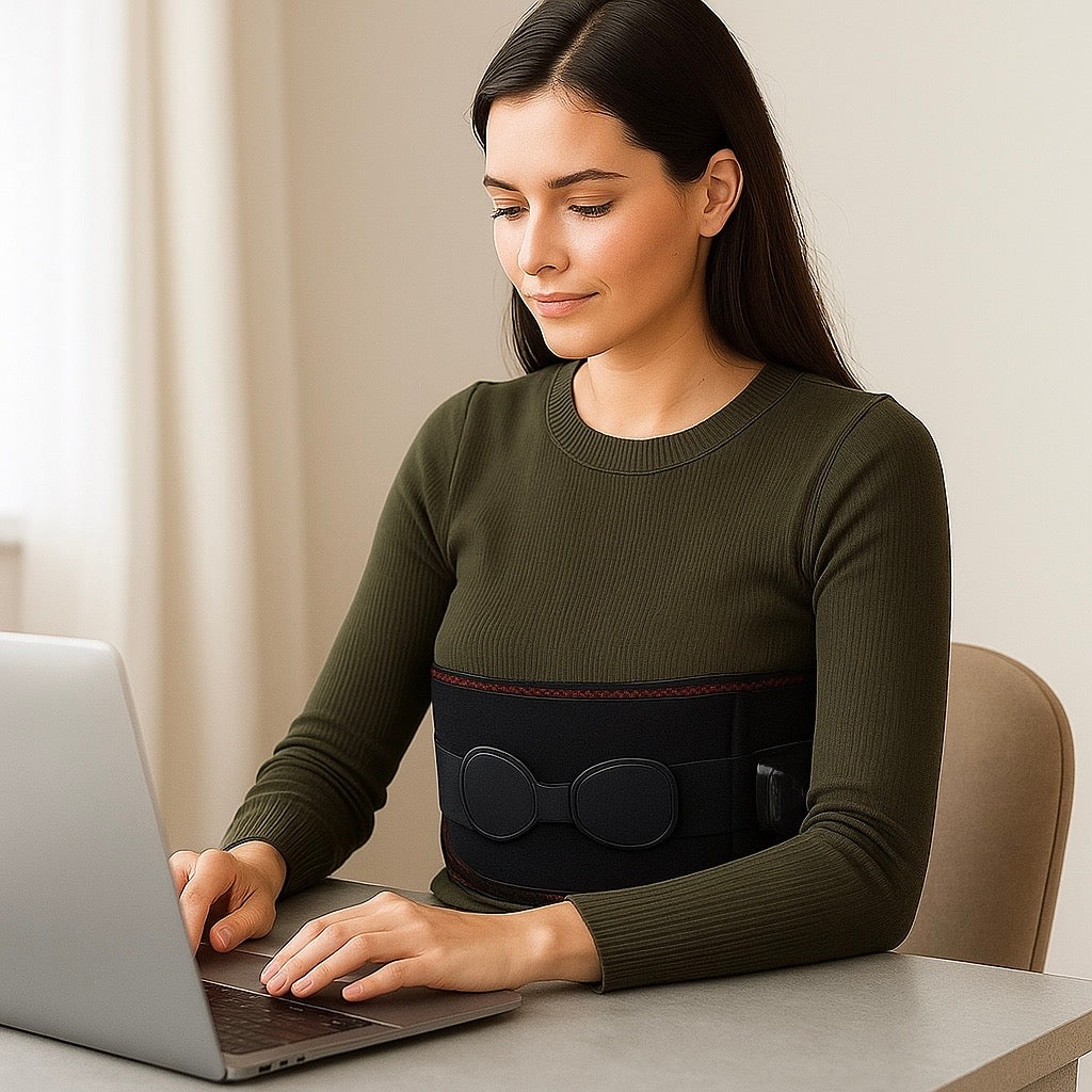 Ja! Bæltet er trådløst og genopladeligt, så du kan bruge det hvor som helst – hjemme, på kontoret eller endda i bilen.